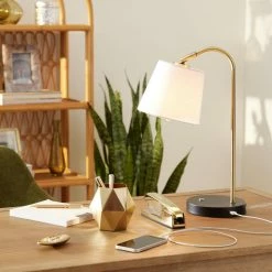 Wholesale ๐ World Market Aida White Linen and Metal Adjustable Task Lamp with USB ๐
