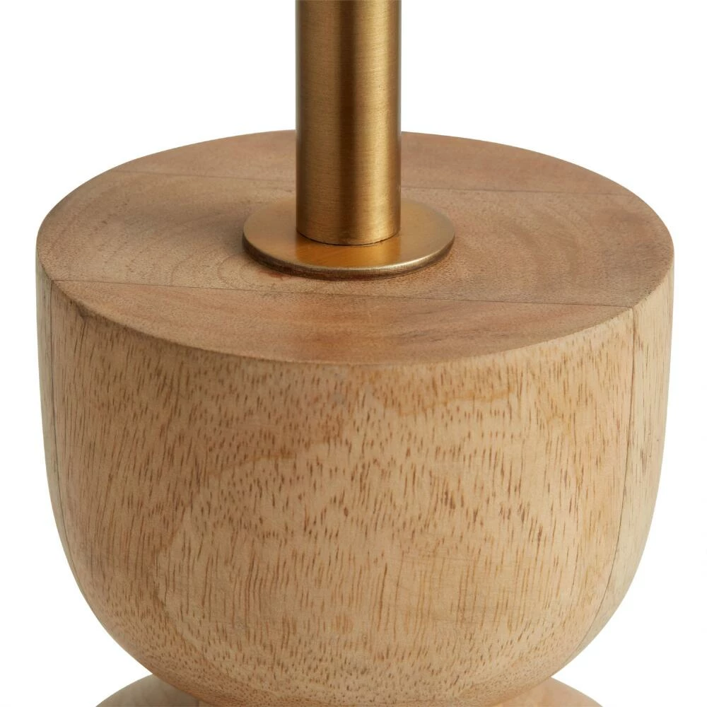 The elegant sculptural silhouette of our Asher table lamp base is lathe-turned of mango wood by skilled artisans, its smooth curves detailed with a versatile blonde finish. A sleek metal neck in an antique-brass finish gives its natural appeal a subtle touch of mid-century glamour. This classically sophisticated tabletop lamp is both a lighting solution and a stunning objet d’art, its handcrafted qualities making each one unique.