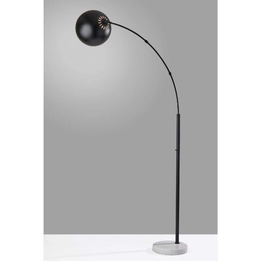 Give your space a pleasant glow with the ultra-modern Astoria arc floor lamp from Adesso. It features a substantial round marble base, large adjustable dome shade and a slim silhouette to easily place in tight spaces near your couch or favorite chair. Available in matte black and brushed steel finishes, this light instantly updates any room.