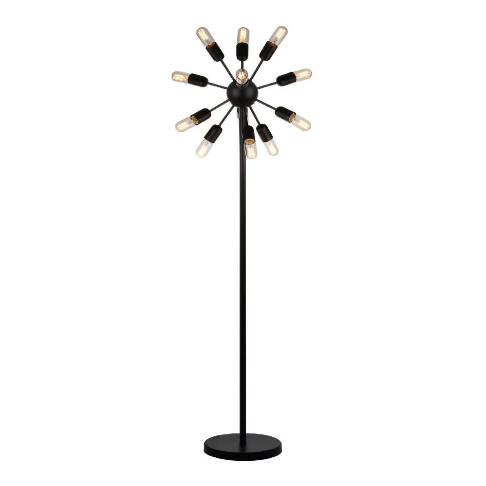Light up your space in showstopping style with this contemporary floor lamp from Safavieh. Like something you’d find in a hip boutique hotel, this floor lamp has a retro sputnik-style design updated with industrial touches from black-finished metal and exposed Edison bulbs.