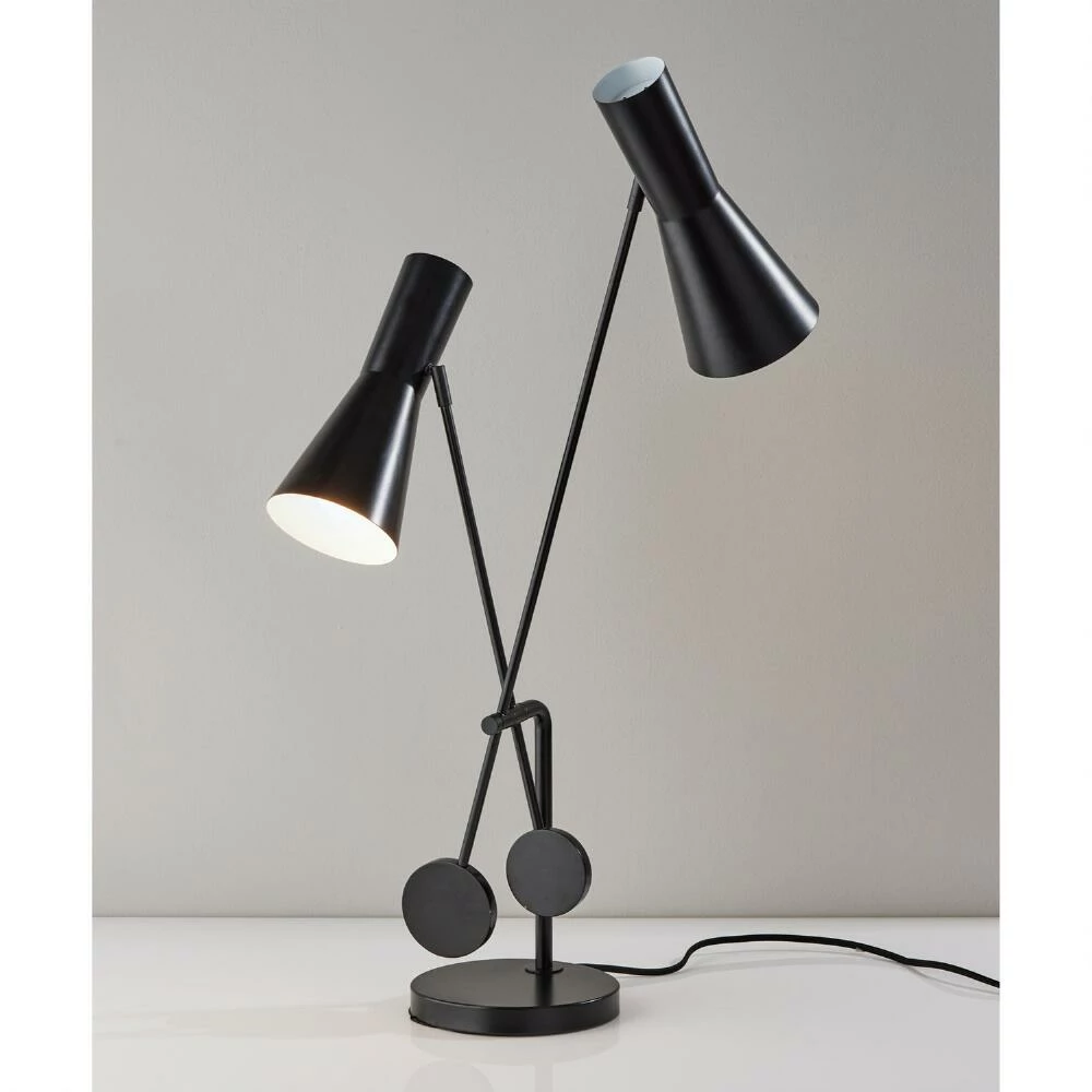 The Bond desk lamp from Adesso can transform any empty tabletop into an artful display. It’s designed with two retro black metal cone shades affixed on thin arms with round ends fixed to a circular base. Both the shades and arms are fully adjustable to shine light exactly where you need it and the base features a USB port to charge your devices all while looking smart and sleek.