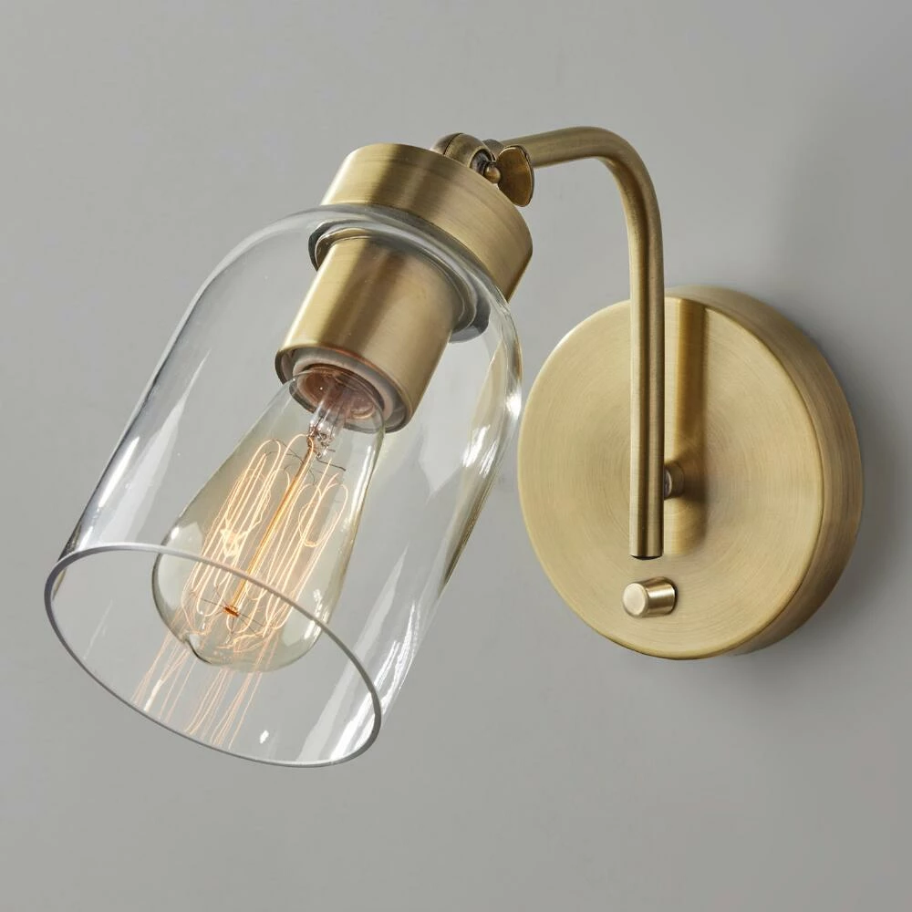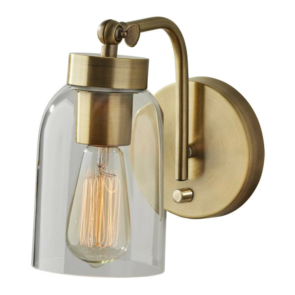 Featuring antique brass hardware, the Bristol wall lamp brings warm light and mid-century style to your space. An adjustable clear glass shade showcases the included Edison bulb and lets you shine light where you need it. Ideal for illuminating hallways and entryways, this wall light is gorgeous mounted next to a bed or mirror.