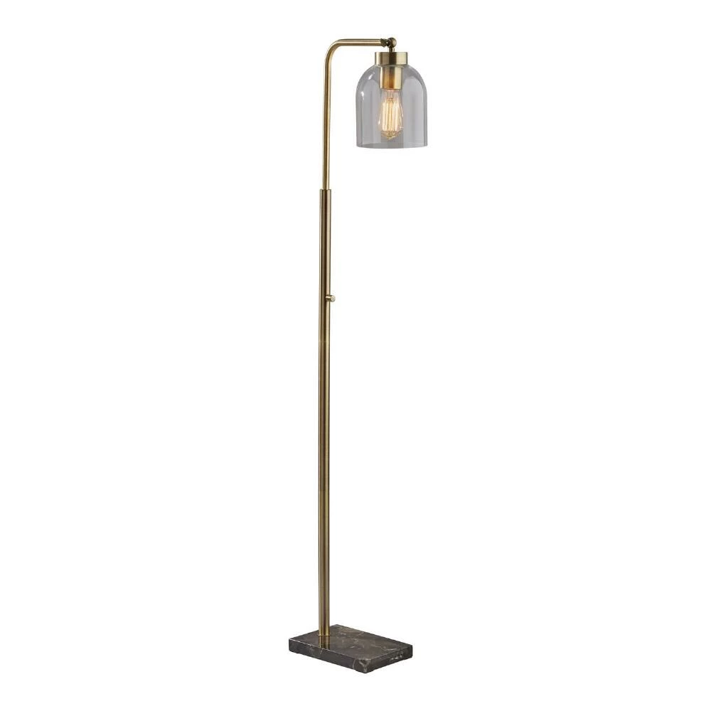 Featuring a brown marble base and antique brass hardware, the Bristol floor lamp brings warm light and mid-century style to your space. An adjustable clear glass shade showcases the included Edison bulb for a luxe look and lets you shine light where you need. Ideal next to a sofa or armchair, this compact floor light is a chic way to illuminate your living room or bedroom.