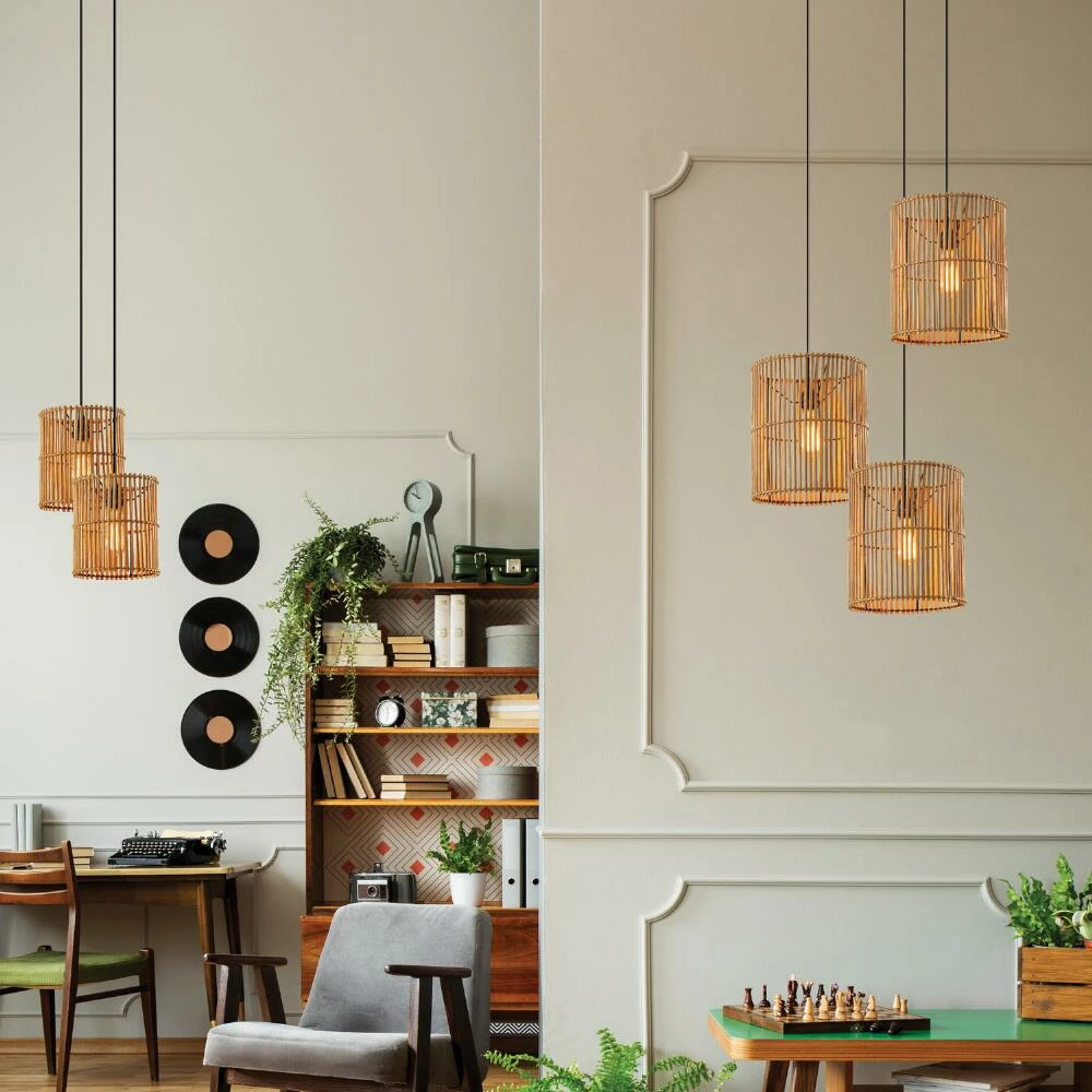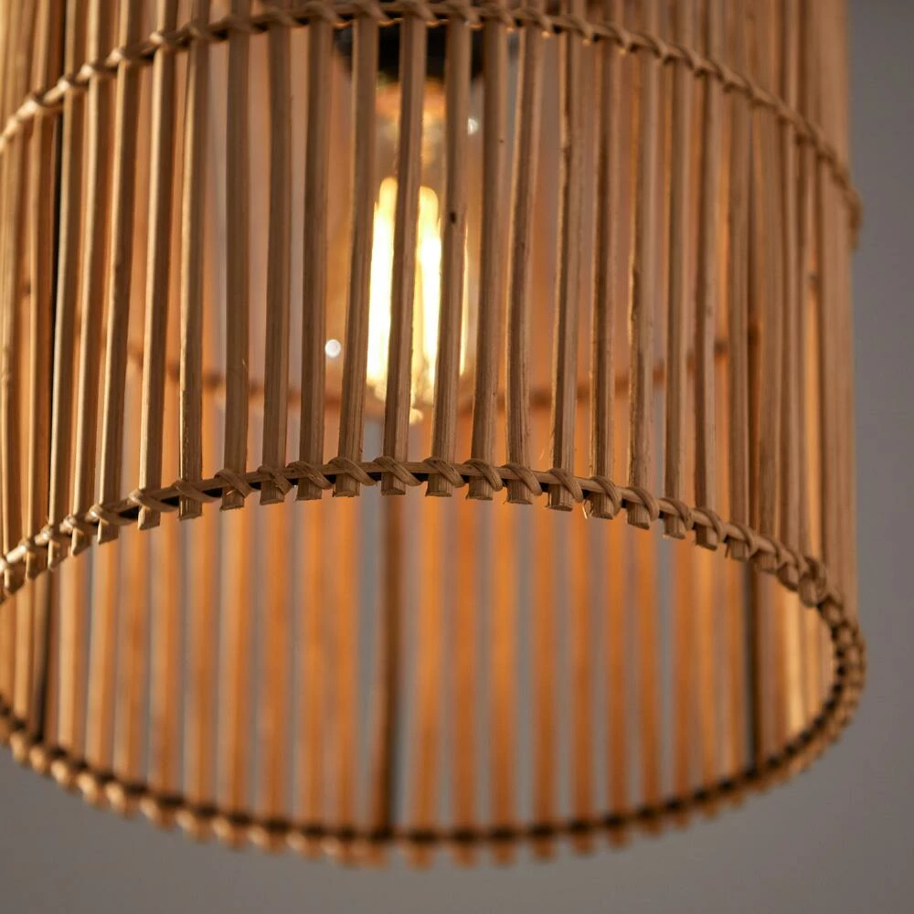 Add texture and personality to your space with the Cabana pendant light from Adesso. Featuring a natural rattan shade woven in a modern and airy vertical design, it lets light filter from an amber-tinted bulb within. Place this large statement piece above a dining table, entryway or in a bedroom to instantly update your space.