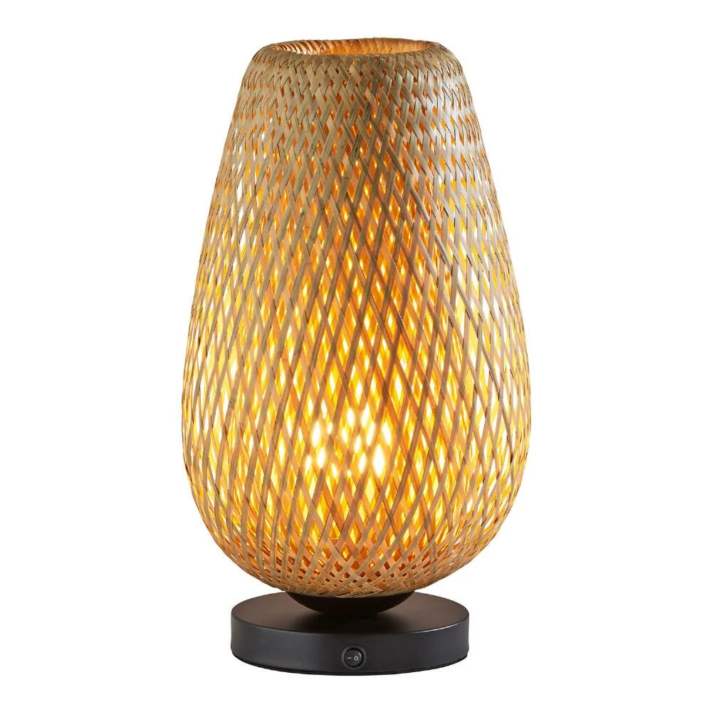 The airy tulip-shaped natural bamboo shade of our accent lamp emits a soft glow that bathes a room with warm light. Featuring a contrasting black metal base, the Castine lantern is casual and elevated at once.