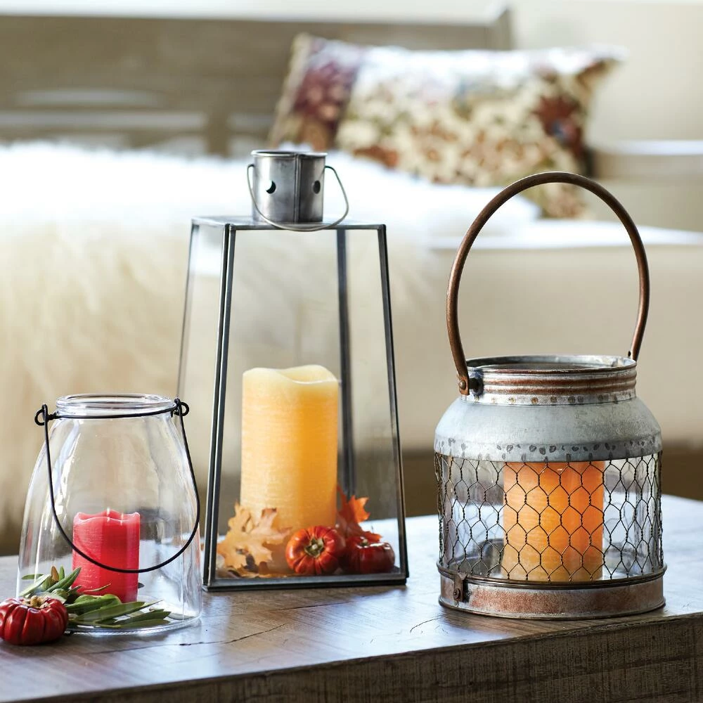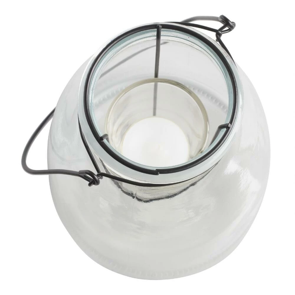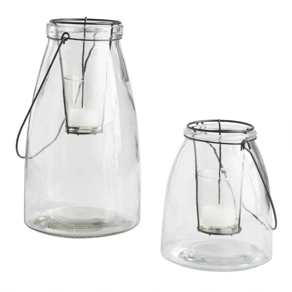 Available in two sizes, our versatile clear glass lantern lets flickering candlelight take center stage. Hang or place on a tabletop to bring a cozy ambience to any space.