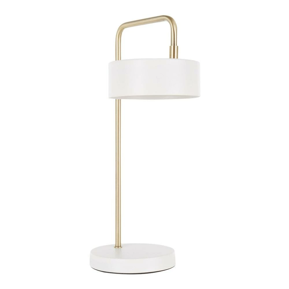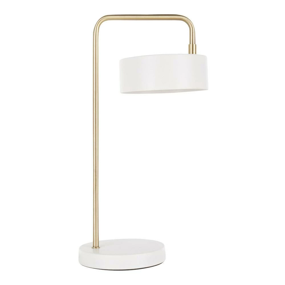 Featuring an angled gold-metal neck that bends over a rotating task shade, the sleek Clarence table lamp is a luxe addition to the desktop. Combining modern style with utility, the lamp’s distinctive round shade rotates horizontally to shine light where it’s needed while its compact base and streamlined neck save tabletop space. Easy to blend with a range of decor, this unique task light is an adjustable essential for work and reading.