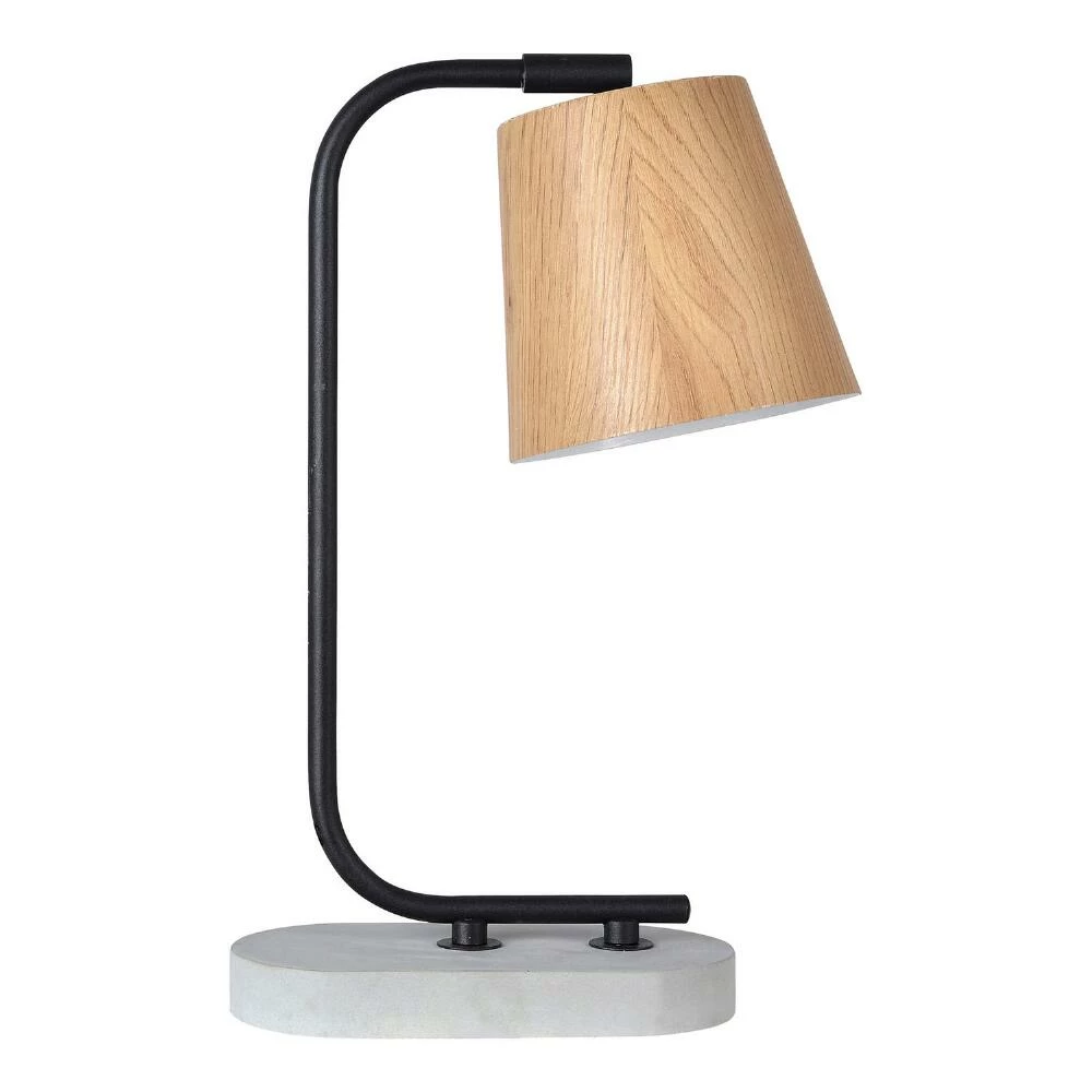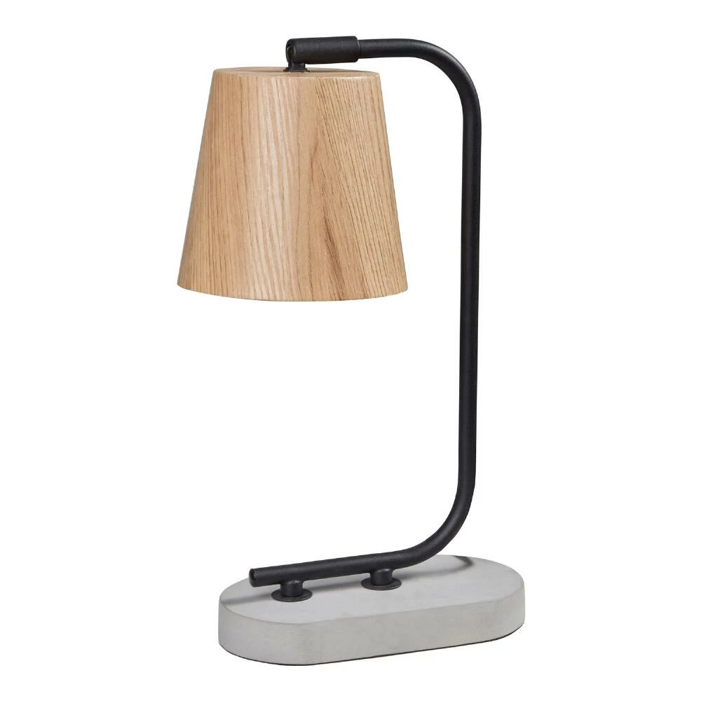 Featuring a natural concrete base and textured black steel body, the Reza task lamp is contrasted with a traditionally shaped wood-veneer shade. Completed with a black fabric cord, this desk lamp has a clean minimalist design that brings a chic, contemporary look to your office or reading space. Its neutral tones make it a versatile addition to the modern home.
