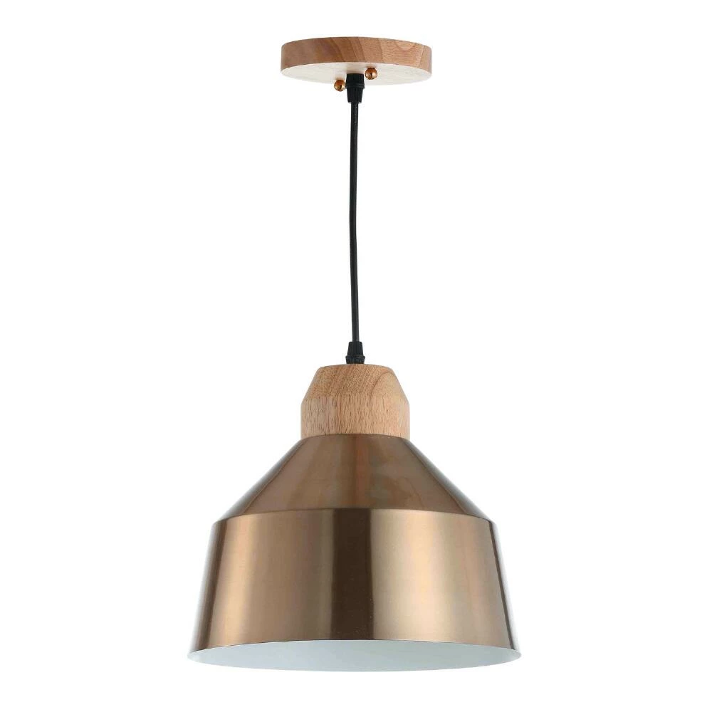 Lustrous brass and natural wood accents give the Dajana pendant light from Safavieh its contemporary style. A stunning addition to the kitchen, dining room or living room, this hanging lamp elevates a room with its warm light.