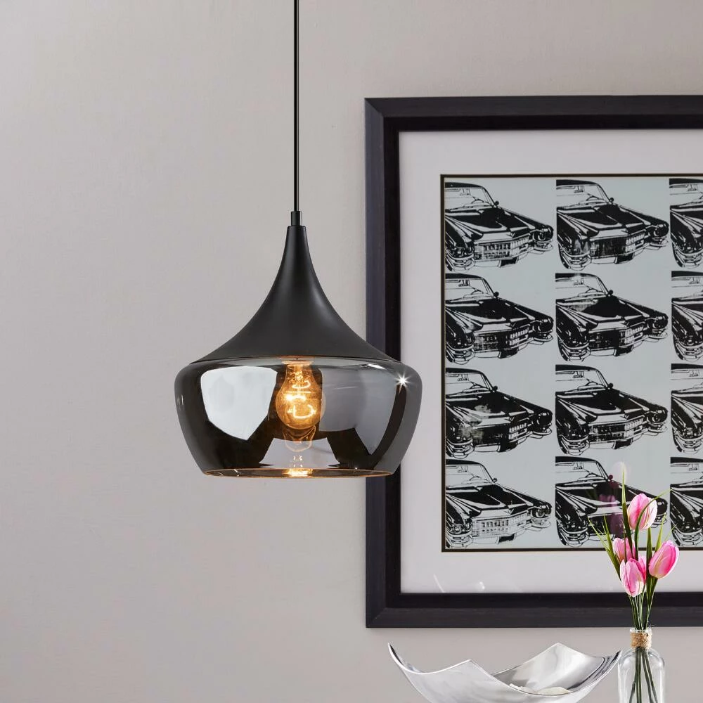 The Eliza pendant light makes a contemporary statement with its slender black metal body and architectural smoked glass shade. A sleek way to illuminate your dining area, living room or bedroom, this ambience-enhancing hanging light is sure to capture attention, on or off.