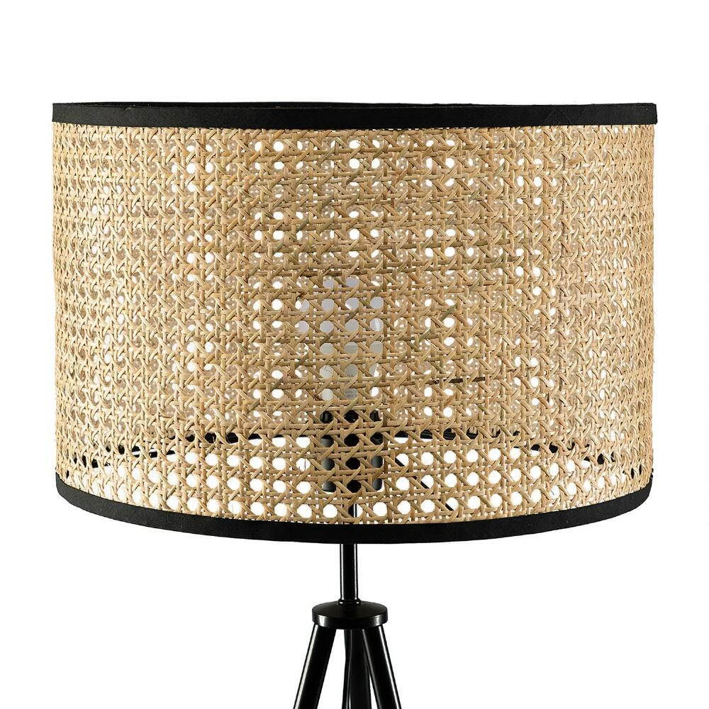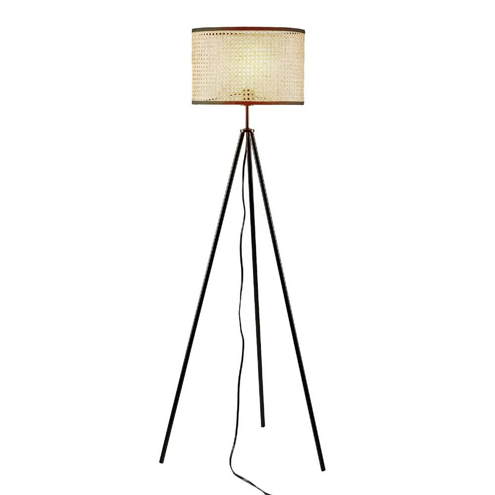 Pairing the black metal legs of a classic tripod base with the rounded contours of a woven rattan drum shade, the Ennis floor lamp lights up your decor with its sleek two-tone silhouette. Neutral and elegant with an architectural beauty, its space-saving footprint allows for versatile placement beside chairs, behind furniture or in office and bedroom corners.
