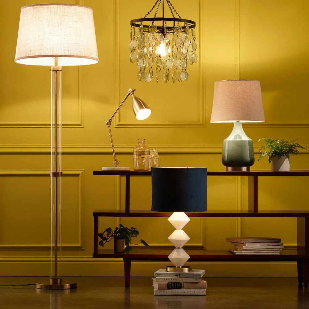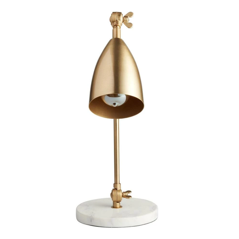 Featuring a natural white marble base anchoring an adjustable gold pedestal and task shade, our mid-century-modern style desk lamp is sleek and refined. It offers points of articulation at the base, midpoint and neck for optimal convenience.