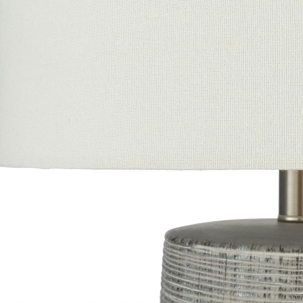 - Made of ceramic with gray and black finishes, metal with nickel finish, linen and polyester