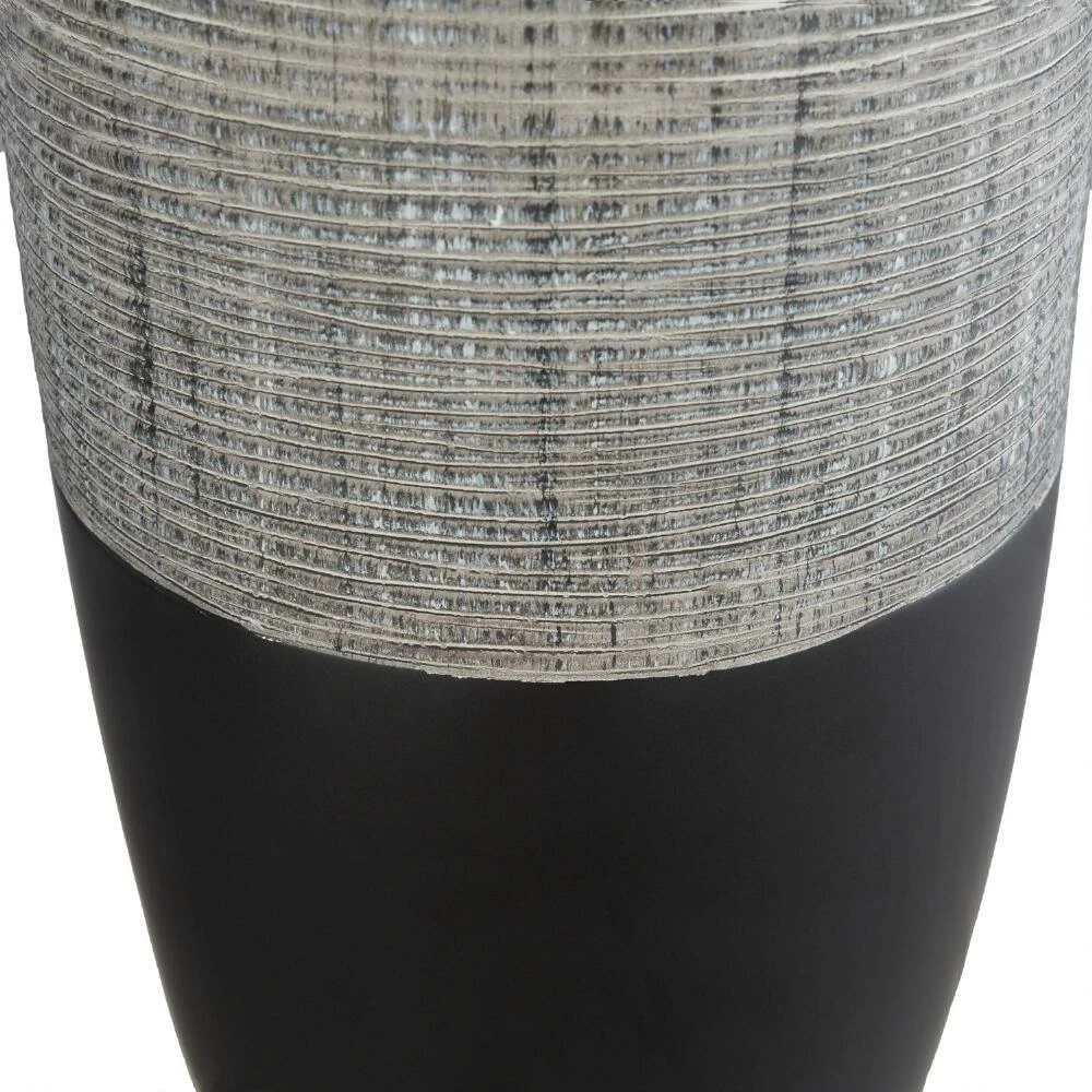 The urn-shaped base of this ceramic table lamp from Surya is finished by hand in smooth black and textured gray, paired with a crisp white linen drum shade and accented with a nickel neck and finial. Neutral and modern, its two-tone base and bright shade ensure it blends with any decor while standing out in style. Its adjustable light setting make it perfect near a reading chair, on a bedside table, in the home office or beside the sofa.