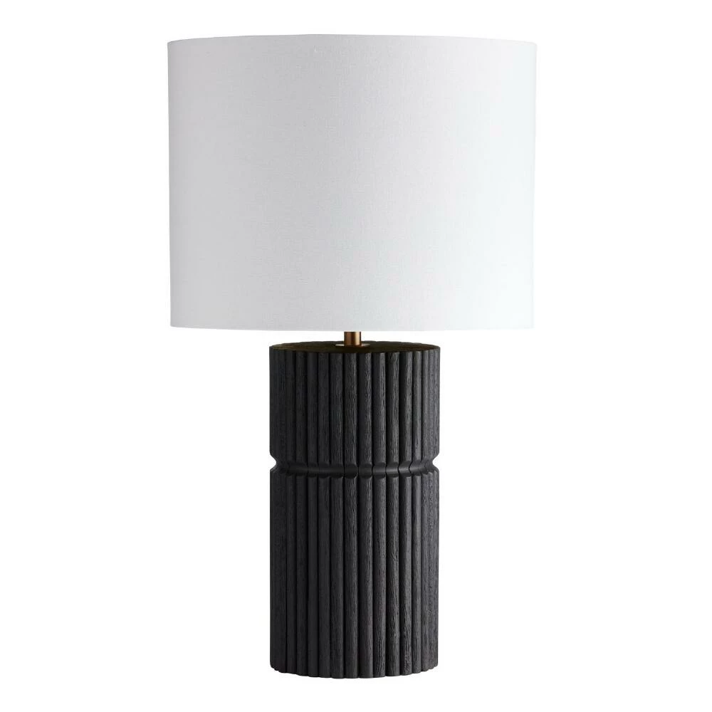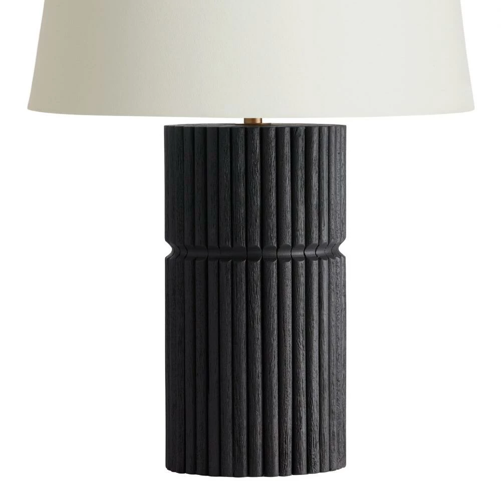 Inspired by antique Roman columns, our exclusive Hudson table lamp base is hand-carved of wood with striking vertical fluting in matte black. Accented with an antique-brass neck that lends it a touch of mid-century charm, this pillar lamp’s architectural design, detailed texture and on-trend finish gives it a timeless quality that complements any decor while standing out.