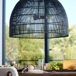 The sculpted silhouette of this natural concrete pendant lamp provides your room with a striking contemporary statement piece. Highlighted with a wooden crown and a textured black steel hanging rod, it has a stylish minimalist feel that combines natural and industrial elements from the outside and brings them into your living space.