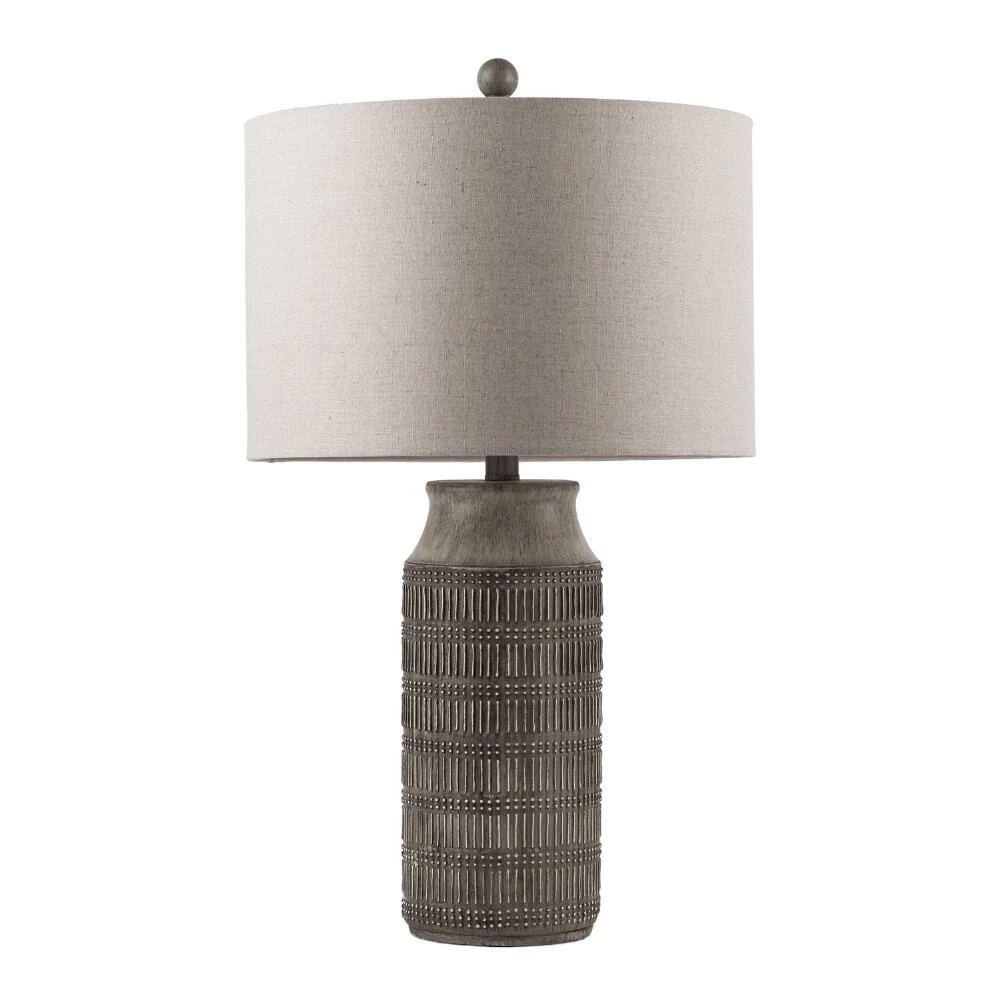 Featuring a hand-finished gray base with an eye-catching texture, the Imelde table lamp from Surya is complemented by a crisp light gray linen shade. Charming and eclectic, the graceful silhouette of this sculpted desk lamp adds global inspiration to your home decor.