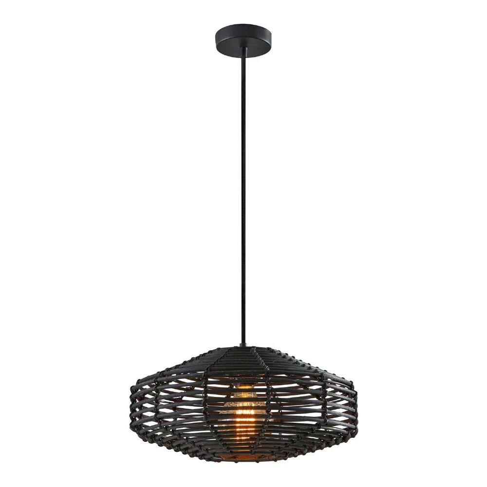 Our modern, black rattan pendant lamp provides boho-chic flair and is complete with a vintage-inspired, amber-tinted lightbulb. Its open-weave shade filters the warm light while highlighting its natural texture, setting an intimate mood in your dining room or adding sophisticated natural beauty to your kitchen.