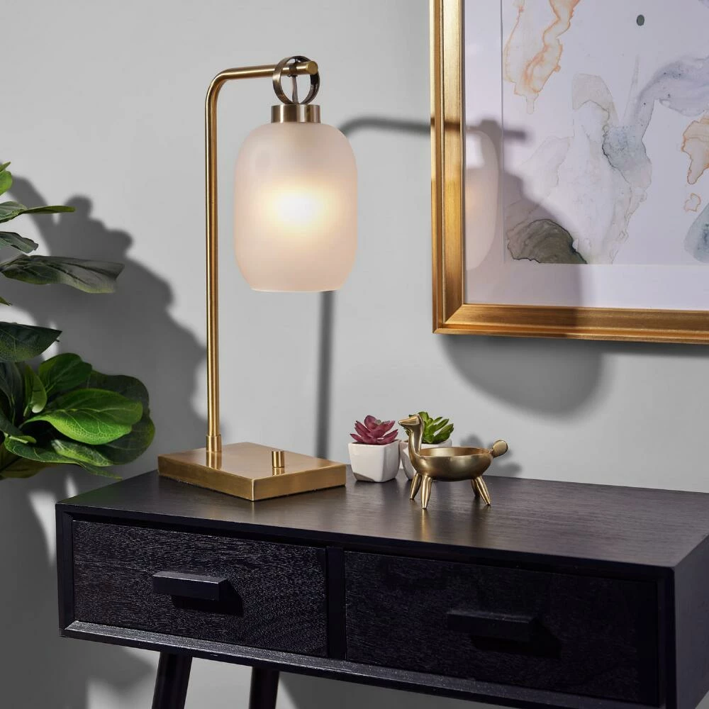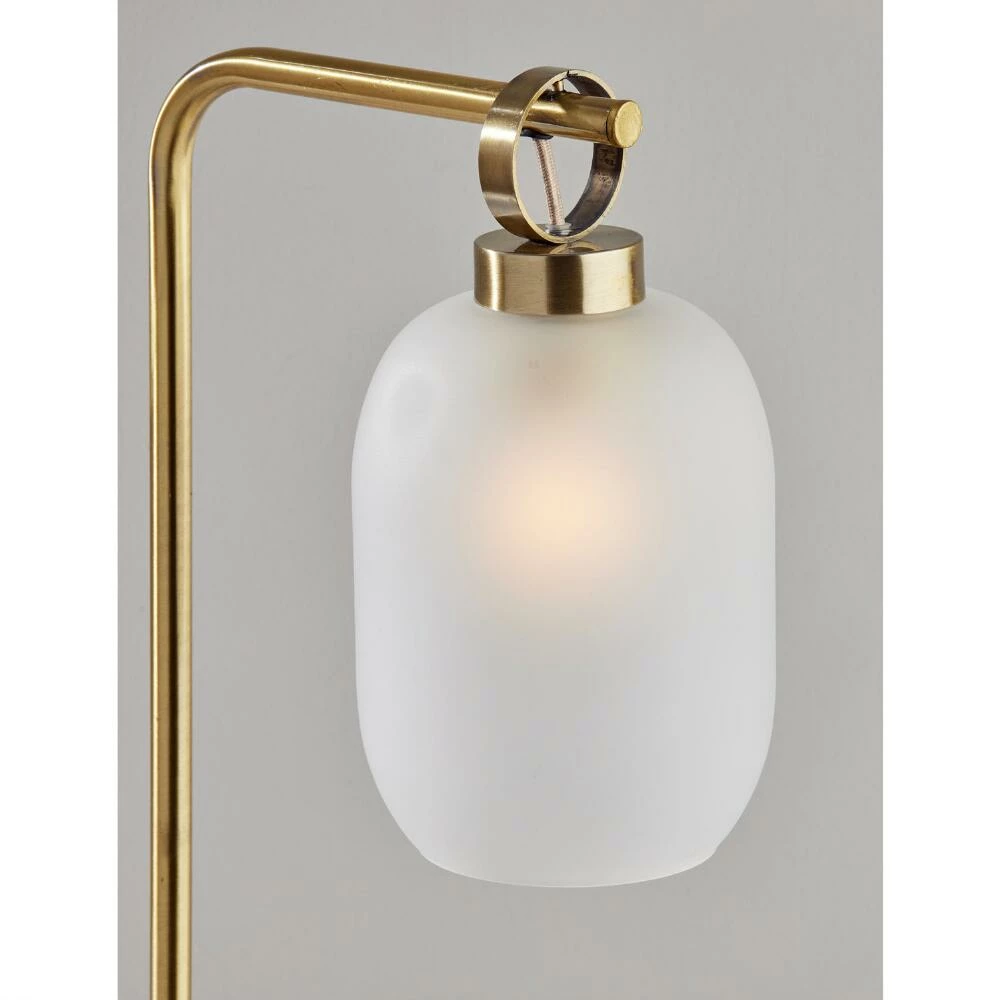 Featuring an antique brass base and stem with a smooth, frosted glass shade, the Lancaster table lamp features a clean-lined design with a distinctly mid-century-modern look. A chic addition to a nightstand or side table, this slim accent lamp from Adesso casts a warm, inviting glow.
