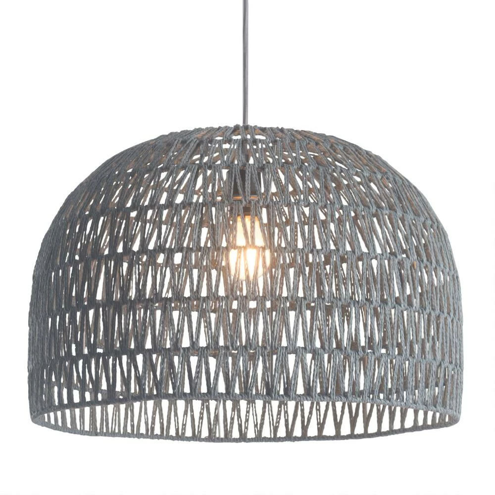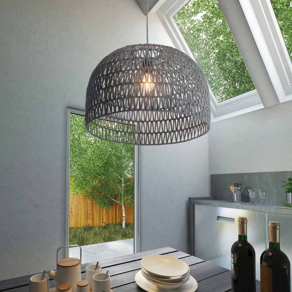 Featuring a neutral gray fabric zigzag design woven around an open metal frame, this dome-shaped pendant has a light and airy modern design. The textured vertical pattern leaves space for light to shine through, filling the kitchen or dining room with a soft glow.
