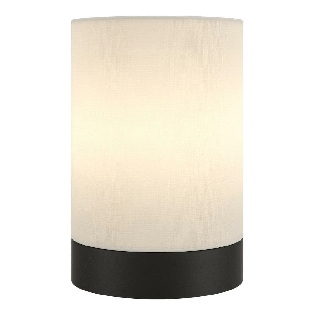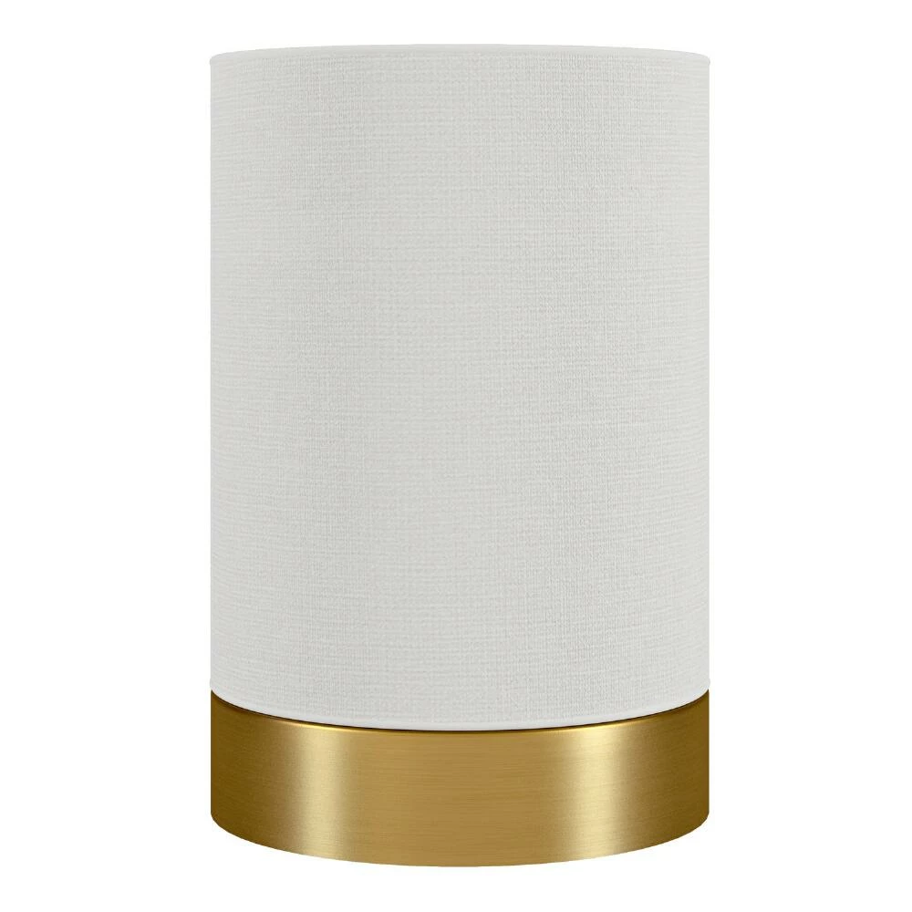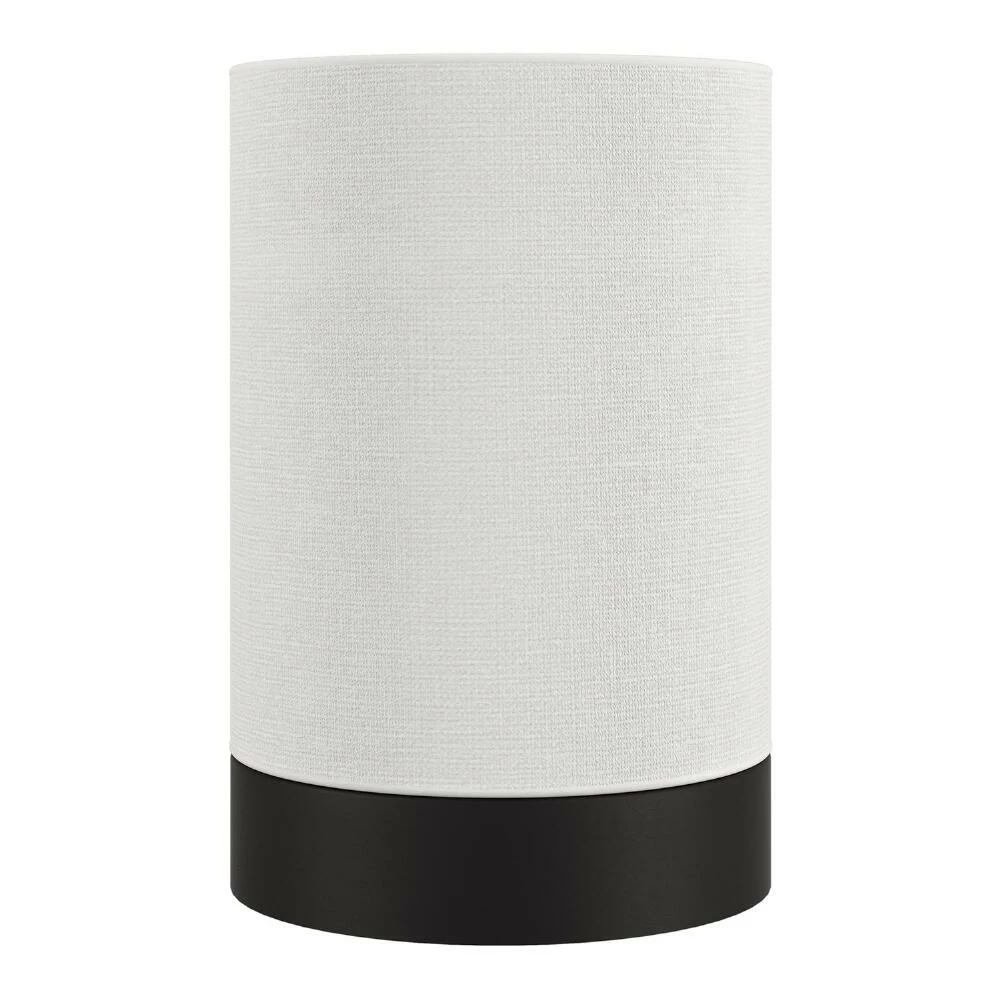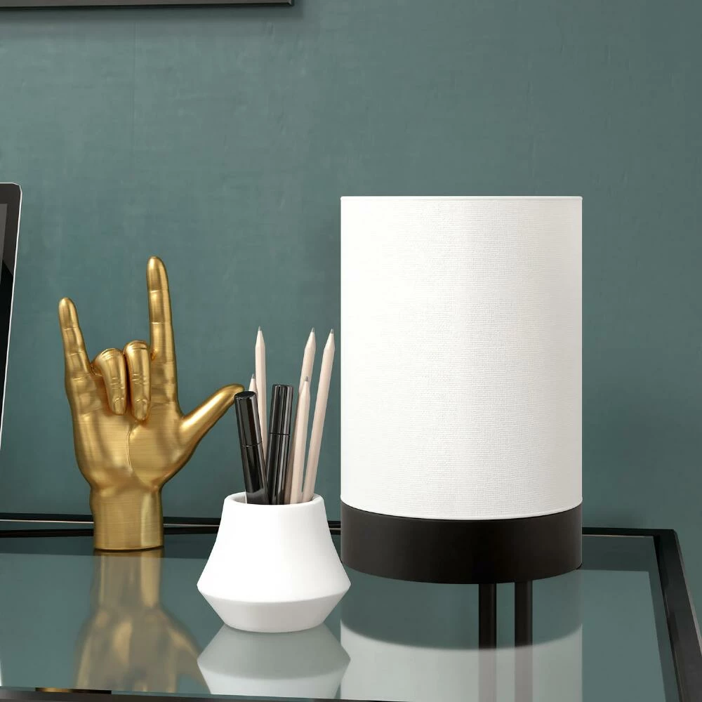 - Includes white linen cylinder shade