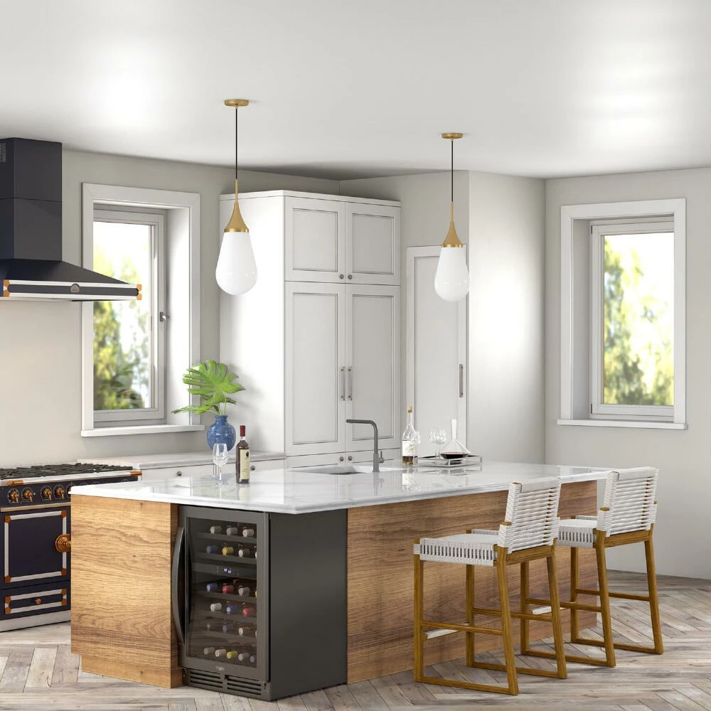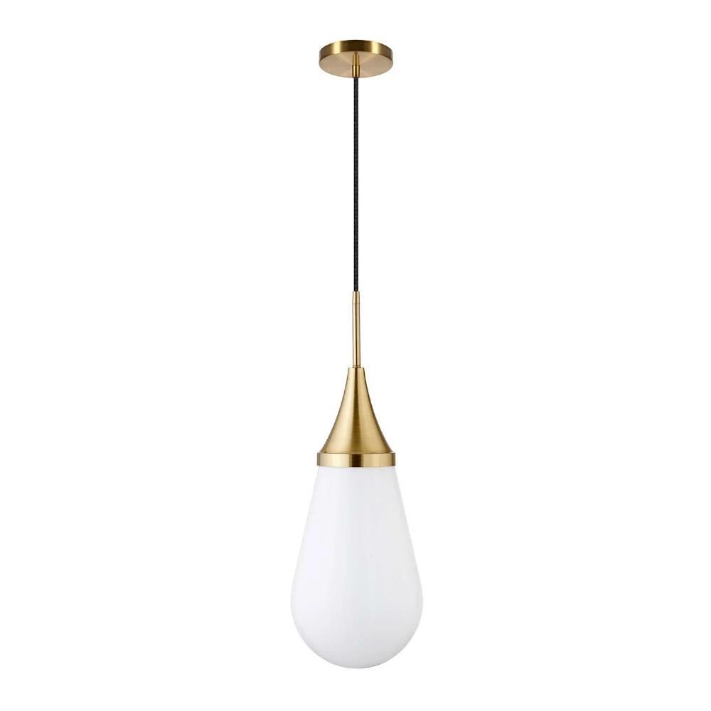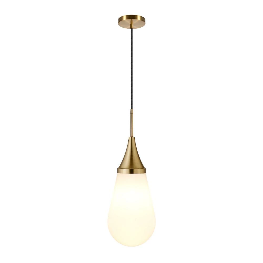 Designed with a teardrop-shaped milk-glass shade that allows diffused light to pour through, the Mika pendant lamp gives your space a modern update. In your choice of brass and blackened bronze finishes, this adjustable hanging light makes a statement with its sleek simplicity that suits a variety of home decor tastes.