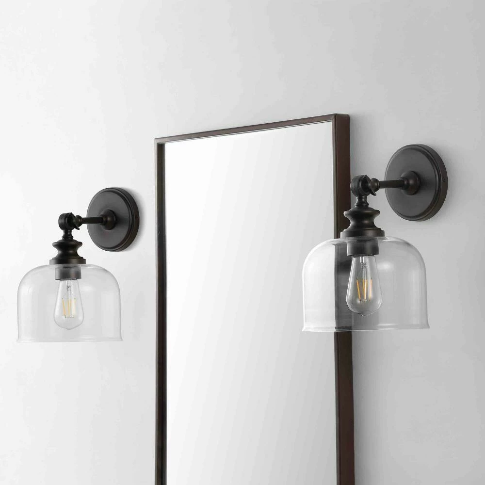 Reminiscent of Victorian-era streetlamps, the Neri wall sconce features an oil-rubbed blackened bronze base and a contemporary clear glass shade. Perfect for the entryway or hallway, this space-saving wall lamp from Safavieh is a chic way to light up your space.
