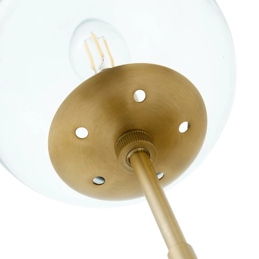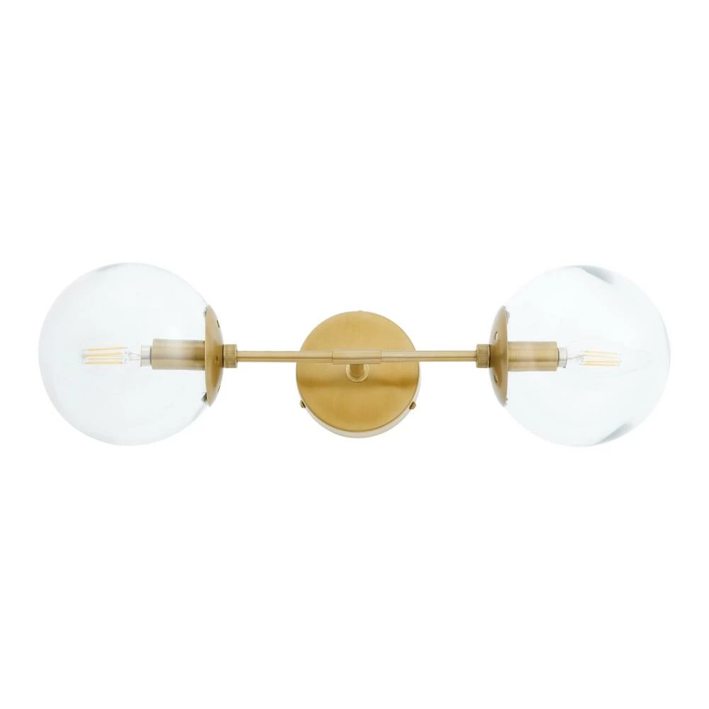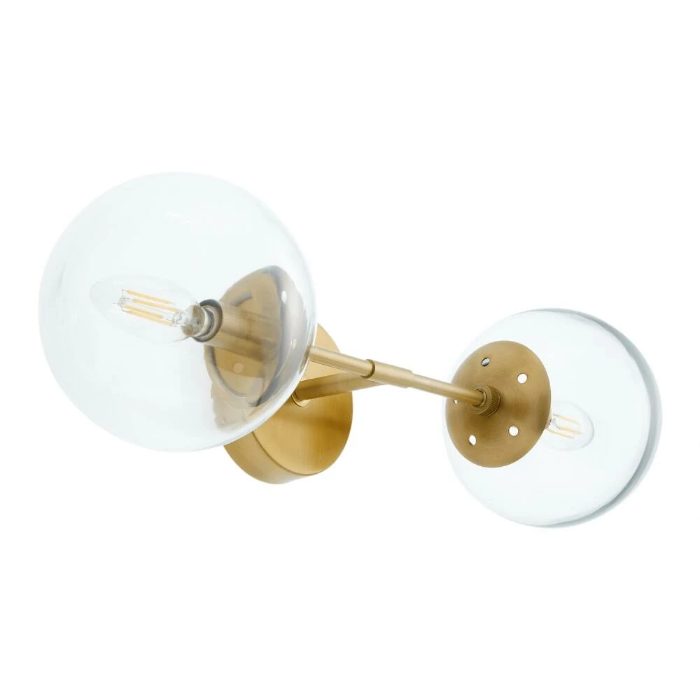 Illuminate your space with the mid-century elegance of the Olivia wall sconce. It’s handcrafted of brass-finished stainless steel and mouth-blown clear glass globe shades that showcase exposed bulbs. Arrange one on each side of a bed or mount multiples in the bathroom, living room or hallway for a chic, compact lighting solution.