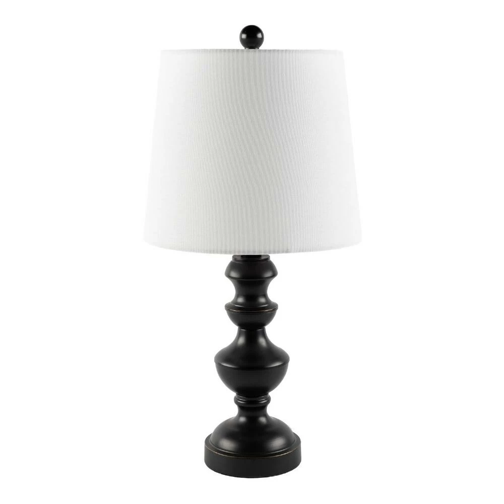 Featuring a hand-finished black spindle silhouette, the vintage-inspired Proteus table lamp from Surya contrasts its ornamental dark base with a crisp and clean tapered drum shade in white. Its stark two-tone beauty stands out in any room, lighting up traditional, modern and farmhouse decor with its time-honored sophistication and versatile neutral hues.
