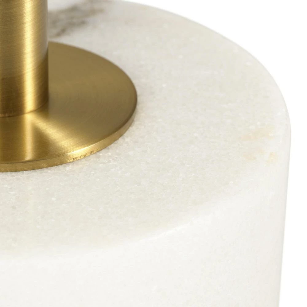 - Crafted of white marble, metal with brass-plated finish and linen-blend fabric