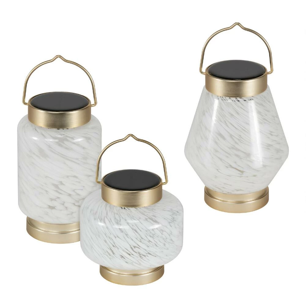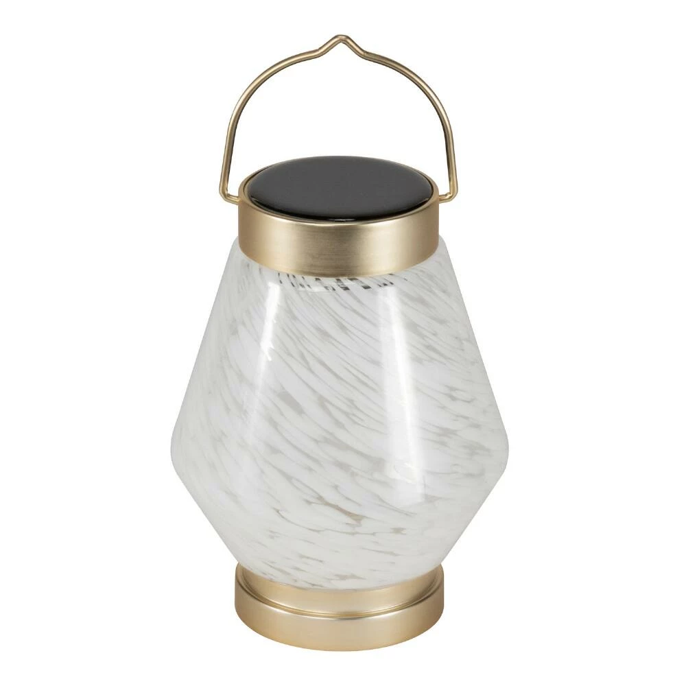 Illuminate your backyard, patio or garden with this outdoor LED solar lantern, artfully crafted of white hand-blown glass. Weather-resistant and solar-powered, this stunning outdoor light gives off an ambient glow. Available in your choice of square, cylinder and cone shapes, group this organically patterned lantern in multiples to complete your outdoor decor.