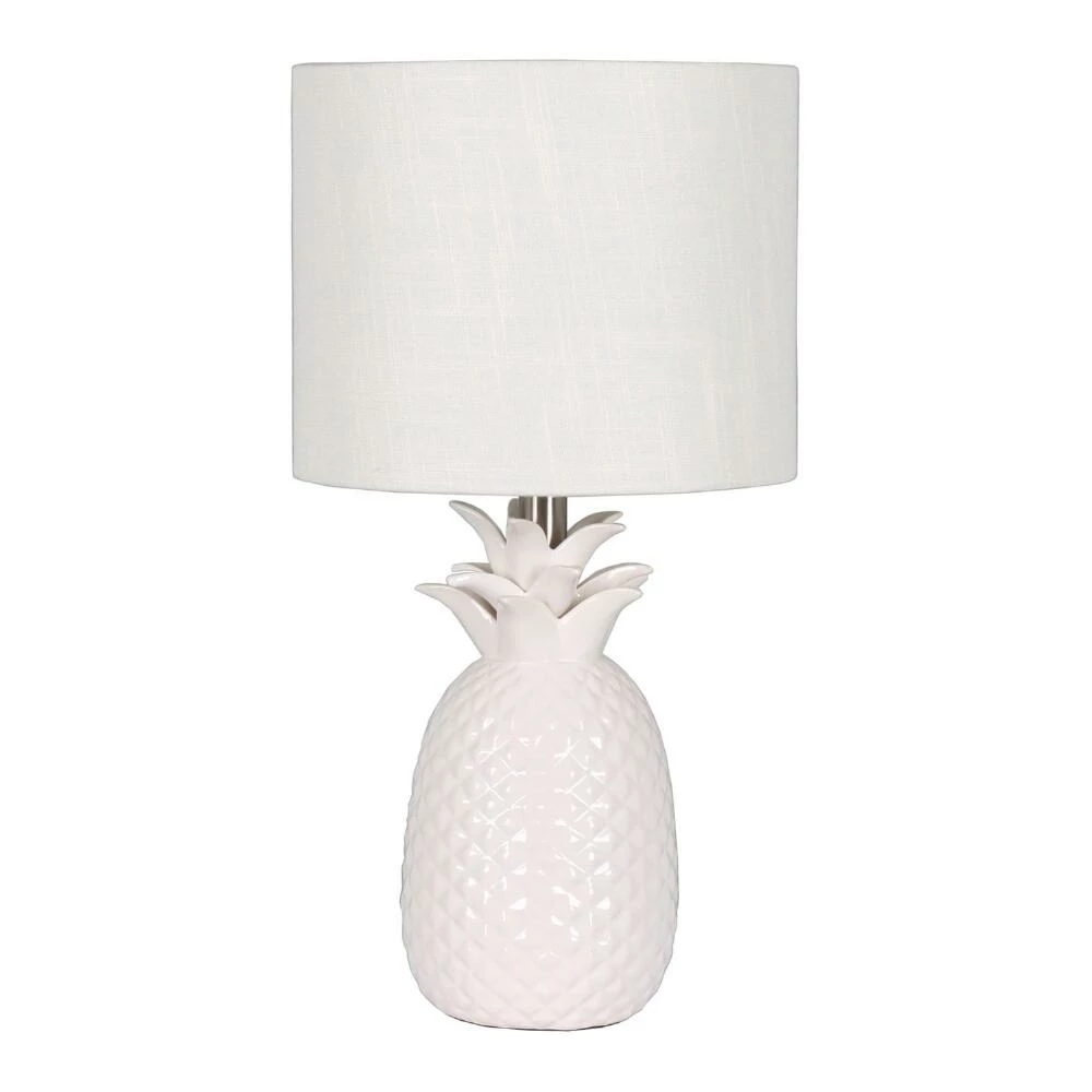 A tropical accent that lights up your decor, this pineapple-shaped table lamp is a welcoming choice in any space. Made with a glossy white ceramic base and white textured fabric shade, this monochromatic piece from Adesso adds a crisp, cheerful finish to any tabletop or counter in your home.