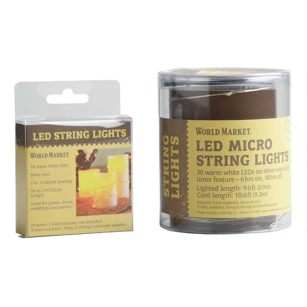 Featuring warm white LED lights on flexible wire, our micro string lights are versatile decorations that shine soft ambient light and include a timer function. Wrap these indoor and outdoor lights around planters, trees, walkways or bannisters, coil them inside vases or arrange them around your decor.
