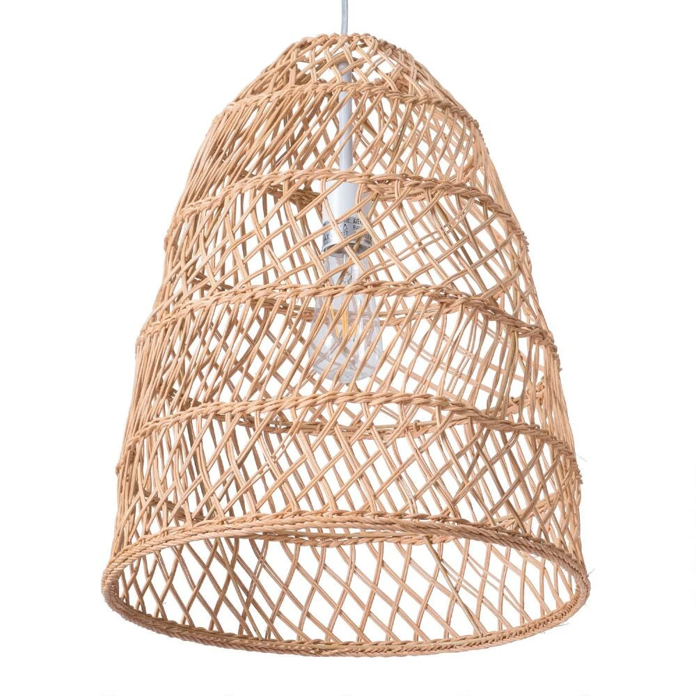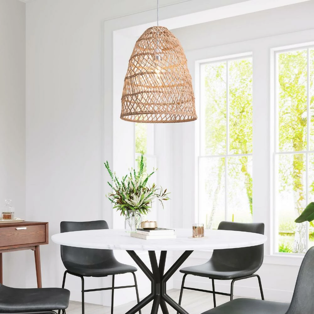 Illuminate a room with this boho-chic pendant light crafted of natural rattan woven into an airy open pattern. Stunning over the dining room table, this pendant lamp brings a room together with its casual elegance and luminous glow.