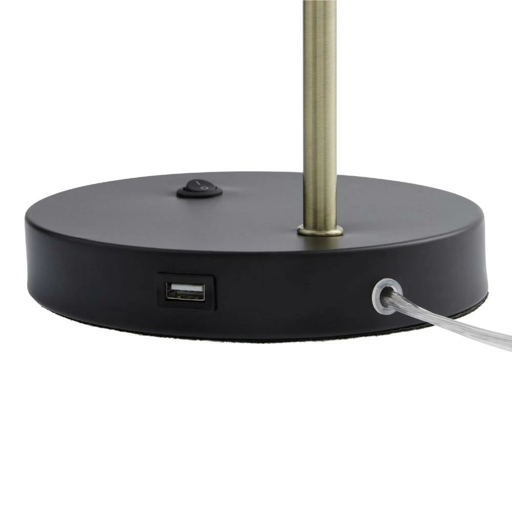 Our Xena modern task lamp features a pivoting dome shade, slender curving gold-finished neck and a space-saving round base with a USB port. The perfect new lamp for your bedroom or office, its sleek shade adjusts to shine light at your preferred angle and its convenient charging port keeps your smartphone or tablet charged and ready to go. This two-tone desk lamp is available with the shade and base in your choice of black or white.